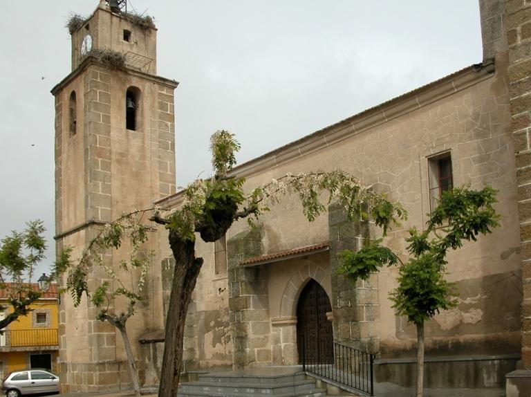 La podemos encontrar descrita en el libro "Cáceres y su provincia" de Miguel Ángel Orti Belmonte; "un edificio de mampostería y sillares en los contrafuertes, de una sola nave con cuatro tramos separados por arcos de medio punto sobre pilastras adosadas, y cubiertos mediante bóvedas de cañón con lunetos. Presbiterio recto, con arco triunfal de medio punto y bóveda de crucería estrellada. Coro a los pies, y torre en el ángulo suroeste, de planta cuadrada, y con dos cuerpos. Dos puertas de entrada, una en el lado de la Epístola, con arco apuntado; otra en el lado occidental, con arco de medio punto. La parte más antigua corresponde al presbiterio, de la segunda mitad del siglo XVI. El primer tramo de nave se construyó entre 1630 y 1650, edificándose el resto del templo en la segunda mitad del siglo XVII".