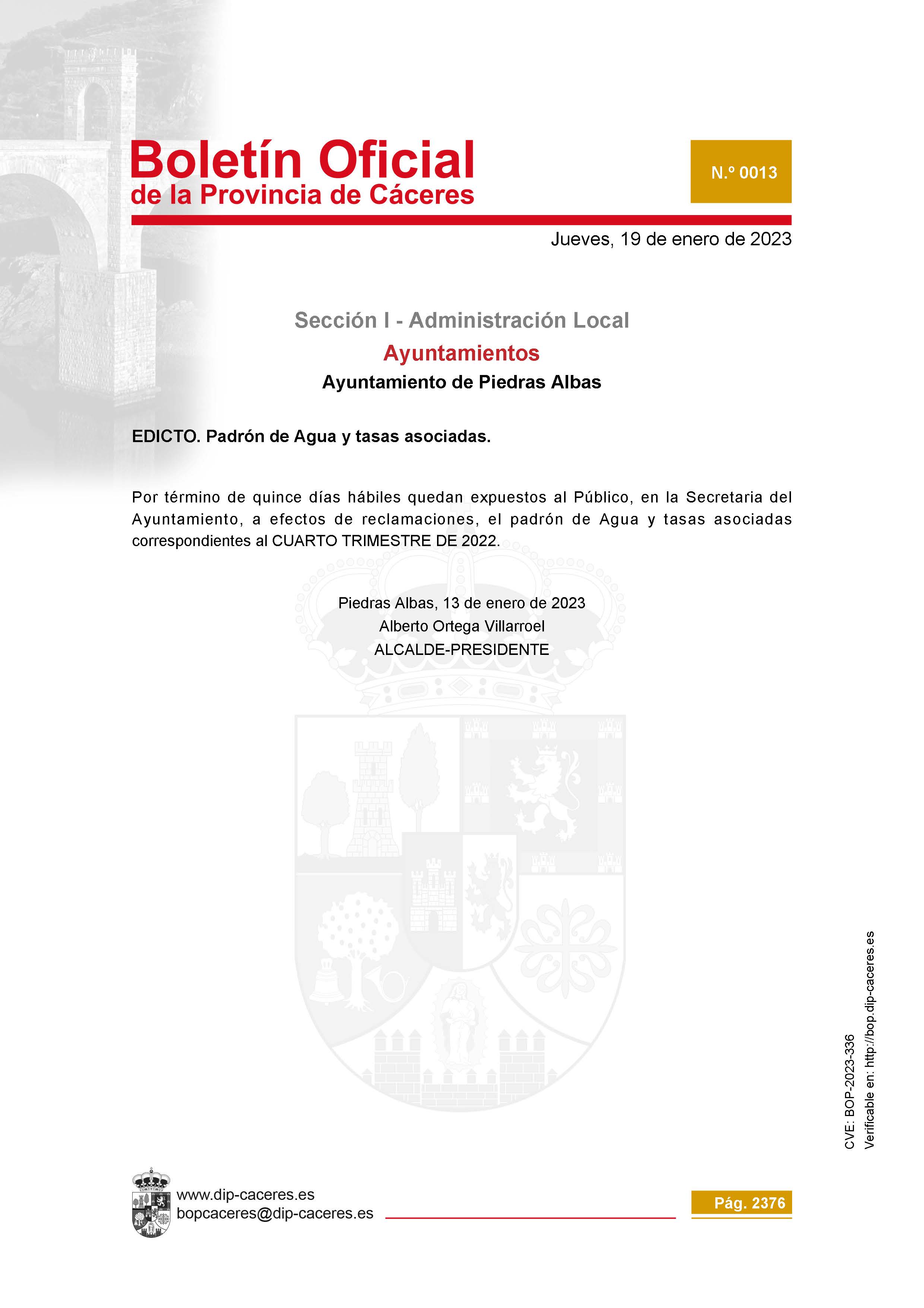 BOP-2023-336 Padrón de Agua y Tasas asociadas Cuarto Trimestre 2022
